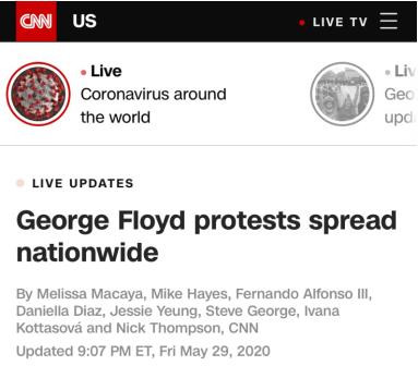 △CNN報道:針對喬治·弗洛伊德事件的抗議活動正在全美蔓延