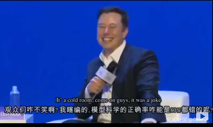 在2019年的人工智能大會上,馬雲跟馬斯克尬聊的視頻估計不少人都看過,當時馬雲就人類對未來的預測提出了一個觀點,説人類對未來的預測99.99%都是錯的,只有0.01%是對的,説這些人即使是對的,那也都是蒙的。馬斯克聽到這話顯然很不高興,接連嗆聲,一會説馬雲自己這話也算在99.99%裏嗎?又説“基於科學模型的預測怎麼可能80%都是錯的”,很顯然馬斯克自己是堅信未來是可以被科學的預測的。