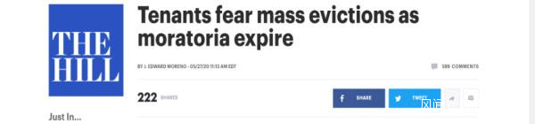 △《國會山報》稱,當限制驅逐禁令到期後,租户將被大量驅離住所