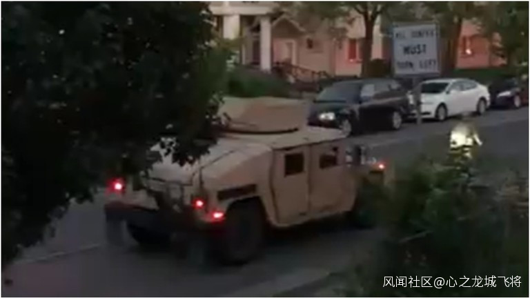 一名推特用户31日發佈了一段視頻並配文:“國民警衞隊和明尼蘇達警察巡邏我們住宅街道,在我家前廊向我們射擊油漆彈,並大喊給他們點‘顏色’。”