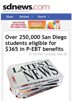 △《聖地亞哥新聞》稱,在校內享受免費或優惠校餐的學生,都可獲得365美元的一次性補助