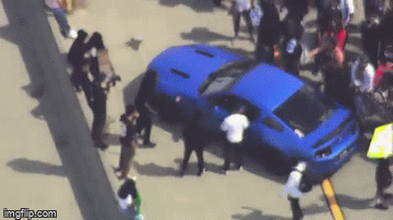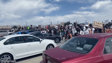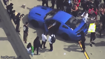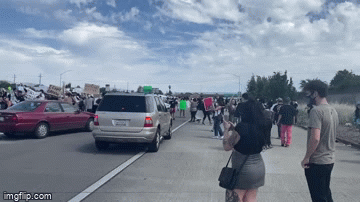 然而,憤怒的遊行者中,**有人完全失去了理智!**這是被圍堵的101公路。彷彿每個路上的車都是有罪的。
