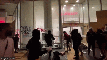 奧克蘭的Walgreens慘遭毒手。示威者不僅砸爛所有擋板還放火燒…