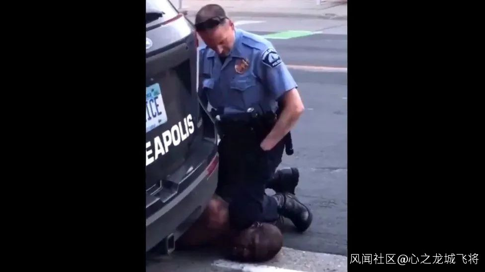 5月25日,根據一位民眾提供給美聯社的影像顯示,警察以膝蓋壓住一名已經被上銬的黑人脖子,黑人不斷呼救“我不能呼吸”達15次,最後仍不幸斷氣而亡。(darnella frazier via ap)