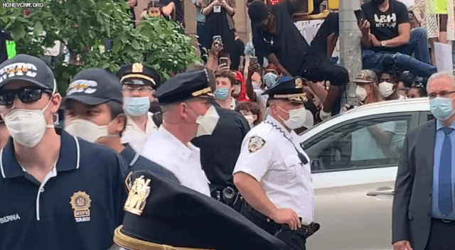 示威者在那裏呆了大約五分鐘,然後向北返回,又有數百名示威者湧進了Foley廣場,與最初的示威者匯合到一起。