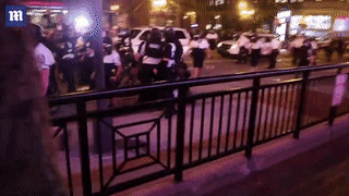 示威民眾呼籲警方辭職並朝警方丟出部分疑有暴力物的瓶罐,但似乎無警察受傷;有些民眾燃燒國旗,其他民眾站在屋頂隔岸觀火嘻笑。