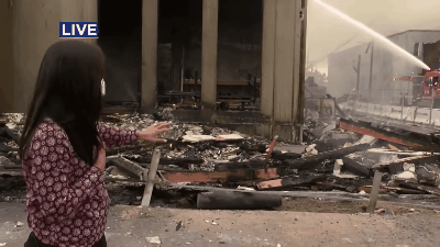示威者佔領警察局後,縱火將整座大樓付之一炬。