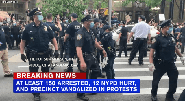 據報道,在逮捕示威者的過程中,紐約警察使用了和導致弗洛伊德死亡的警察同樣的方法——