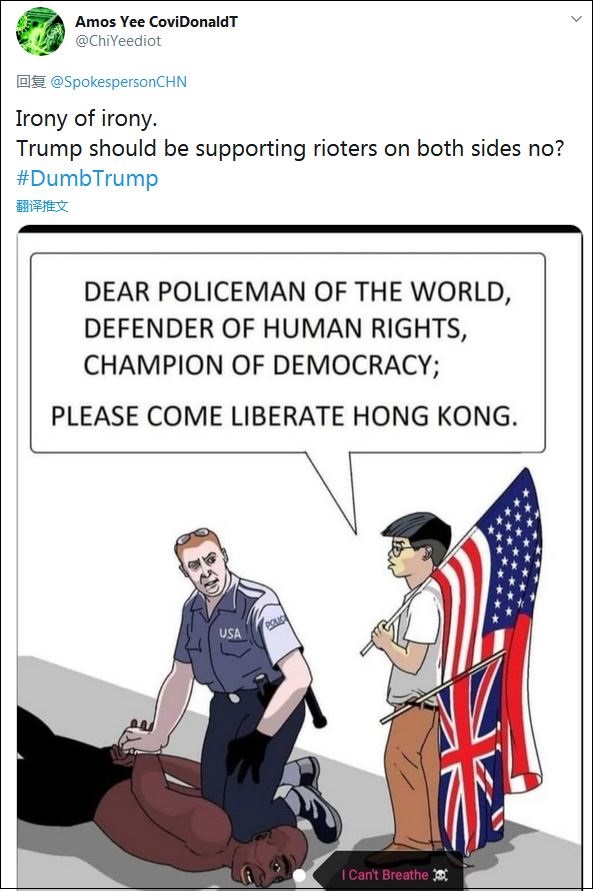 這番言論之所以“人性泯滅”,是因為“台獨”分子和與他們混在一起的海外反華勢力,居然把一個黑人遭種族壓迫、被警察暴力執法致死的極惡劣人權事件,説成是“性生活不和諧”。