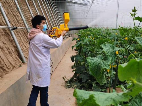 手持式精量電動彌粉機田間施藥 蔬菜花卉所供圖