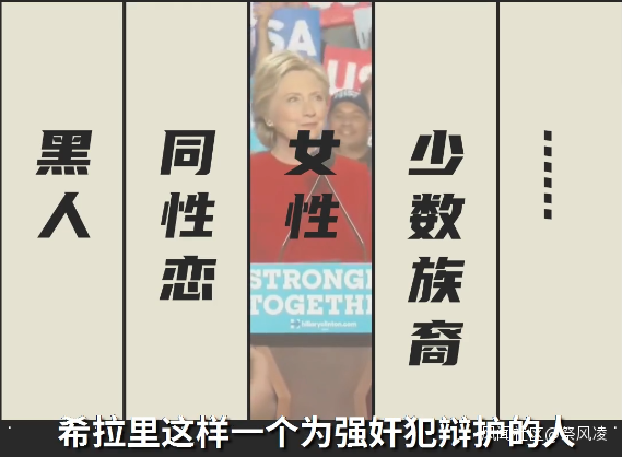從奧巴馬到希拉里,代表精英階層利益的他們,在宣傳中抹除了橫切產生的權貴與平民的界限,強調所述身份羣體的身份,宣講產生羣體共情,進而瘋狂收割選票。(特朗普也用同樣的方法收割了亞裔和紅脖子們的選票)