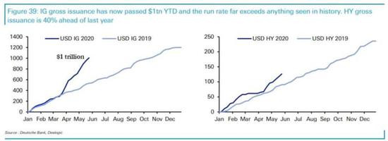 Sysco、Cinemark 和豐田並不是孤例,像它們這樣“賣慘發債回購分紅裁員”的操作,美國高投資評級的公司在最近三個月演繹了無數遍。年初至今,美國高投資評級的公司發債總量超過1.1萬億美元,是2019年同期的兩倍。