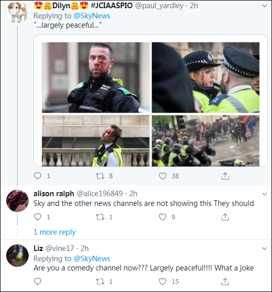 有網友批評天空新聞和其它(英國)媒體報道失實,沒有履行媒體的職責。有網友用諷刺的語氣説,你們是喜劇節目嗎?管這叫基本上和平?這簡直是個笑話。