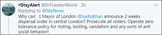更有網友直言對抗議活動的反對,他直指倫敦政府無能,本應對暴力示威者零容忍: