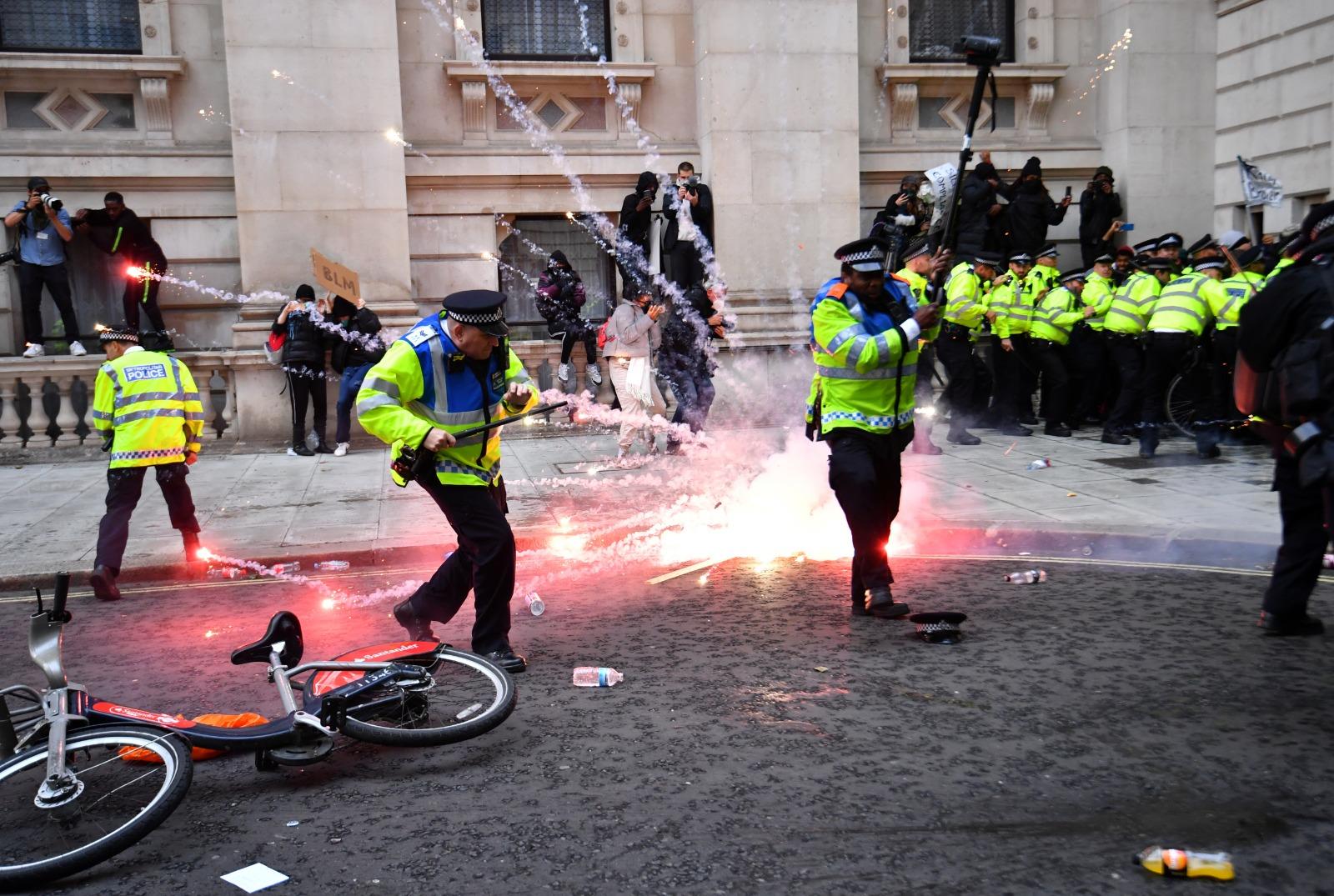 倫敦警察在示威者追逐下逃竄,英國網友坐不住了……_風聞
