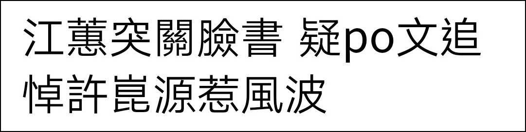 而歌手江蕙卻僅僅是因為發文對許昆源進行悼念,就遭到了酸民的集體圍攻,導致其被迫關閉臉書。