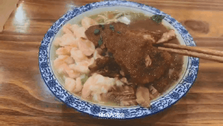 這碗麪成功吸引了隔壁桌的目光,問老闆娘這一碗麪要多少錢,給這麼多料。老闆娘滿臉自豪,我們就是料給的多。看到我在給麪條拍照,老闆還特意從廚房裏出來看,還拿手機拍視頻發朋友圈。
