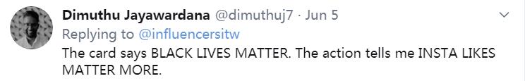 “牌子上寫着‘黑人的命也是命’,但實際行動卻在説‘Instagram的點贊更重要’。”