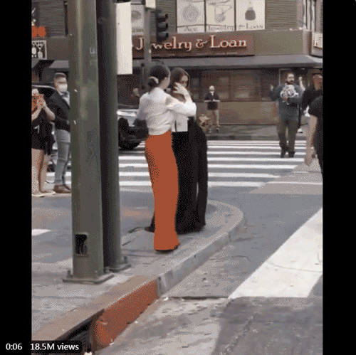 【文/觀察者網 嚴珊珊】為黑人發聲的抗議活動在美國還沒見啥實際成效,遊行隊伍中就已經有人開始蹭熱度擺拍了。當地時間6月4日,洛杉磯街頭出現了這樣的一幕: