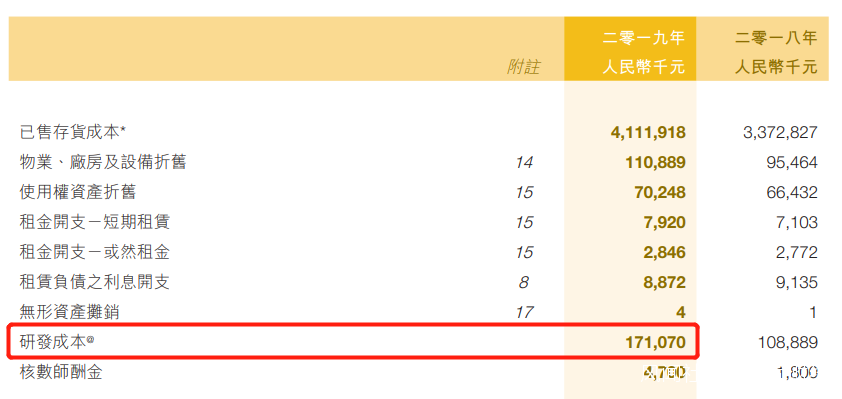 在2017和2018年,飛鶴的研發成本僅為0.15億和1.09億。