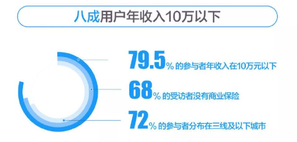 龐大的用户流量和超高的轉換率,吸引着小米金融踏足這一前景廣闊的下沉市場。持同類觀點的公司不在少數,網絡互助這條賽道已略顯擁擠。截至2019年,京東、滴滴、蘇寧、美團、360都已入場,與輕鬆籌、水滴籌等平台共同爭奪三四線城市、月收入1萬元以下的人羣。