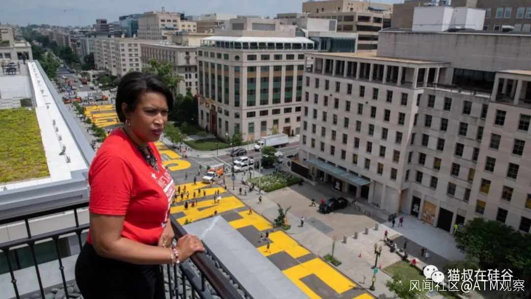 過去幾天,美國首都華盛頓特區的黑人市長布瑟(Muriel Bowser),連續和總統特朗普公開對着幹。特朗普為了去教堂拍照作秀,動用武力對白宮北側的拉法耶特公園進行清場,市長隨後就把這條道路用醒目的黃色油漆塗上了“Black Lives Matter”,把清場的地區命名為“BLM Plaza”。