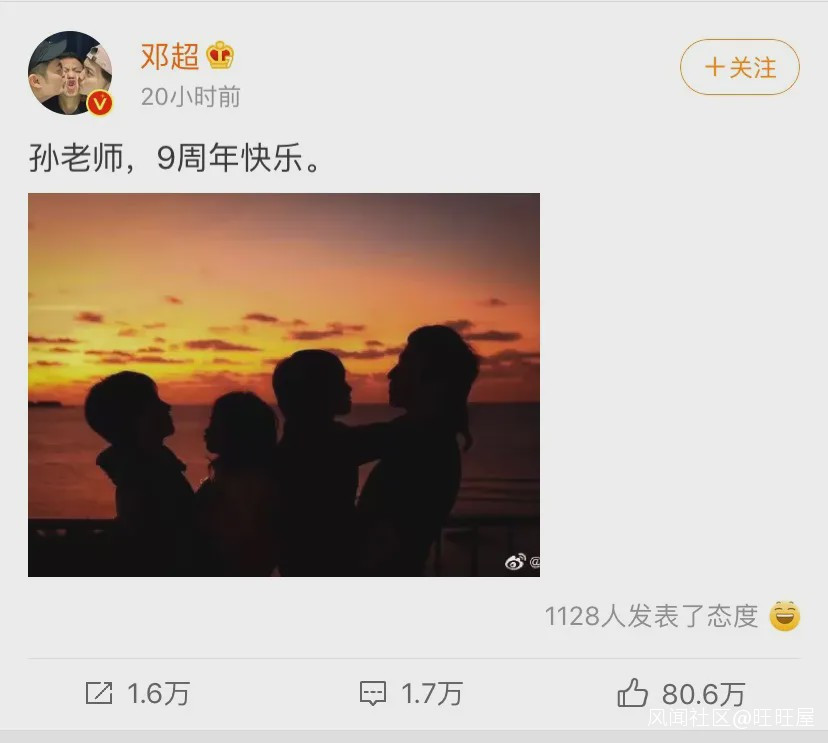 結婚9週年鄧超發了張照片,80萬網友都羨慕了,孫儷卻説:閉嘴吧你!_風聞