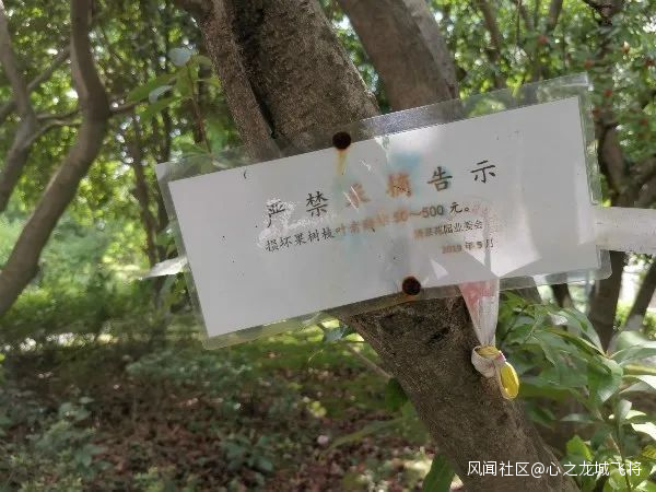 早在去年5月,小區就在楊梅樹下張貼了公示,禁止採摘,損壞果實樹枝的將要求賠償。
