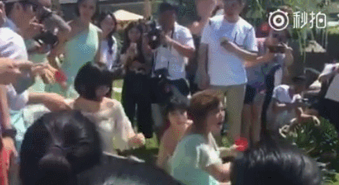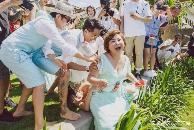 為了不讓柳巖被扔下水走光,她直接衝上前推開伴郎,用身體死死擋住。