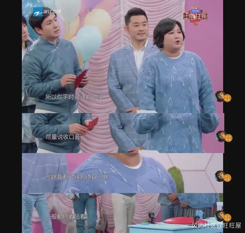 “是不是因為你知道自己嘴大,所以平時説話的時候,儘量説收口音?就跟我知道自己胖,有時候都側着站。”