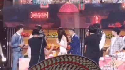 迪麗熱巴正在介紹產品時,突然有位陌生男子衝上來,拿着戒指單膝下跪向她求婚。
