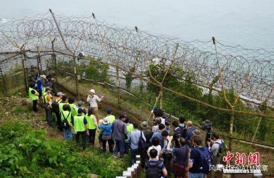 2019年6月,韓國首次向公眾開放韓朝非軍事區徒步遊。圖為遊客正在體驗徒步遊,步道周圍鐵絲網環繞。中新社記者 曾鼐 攝 未來如何?