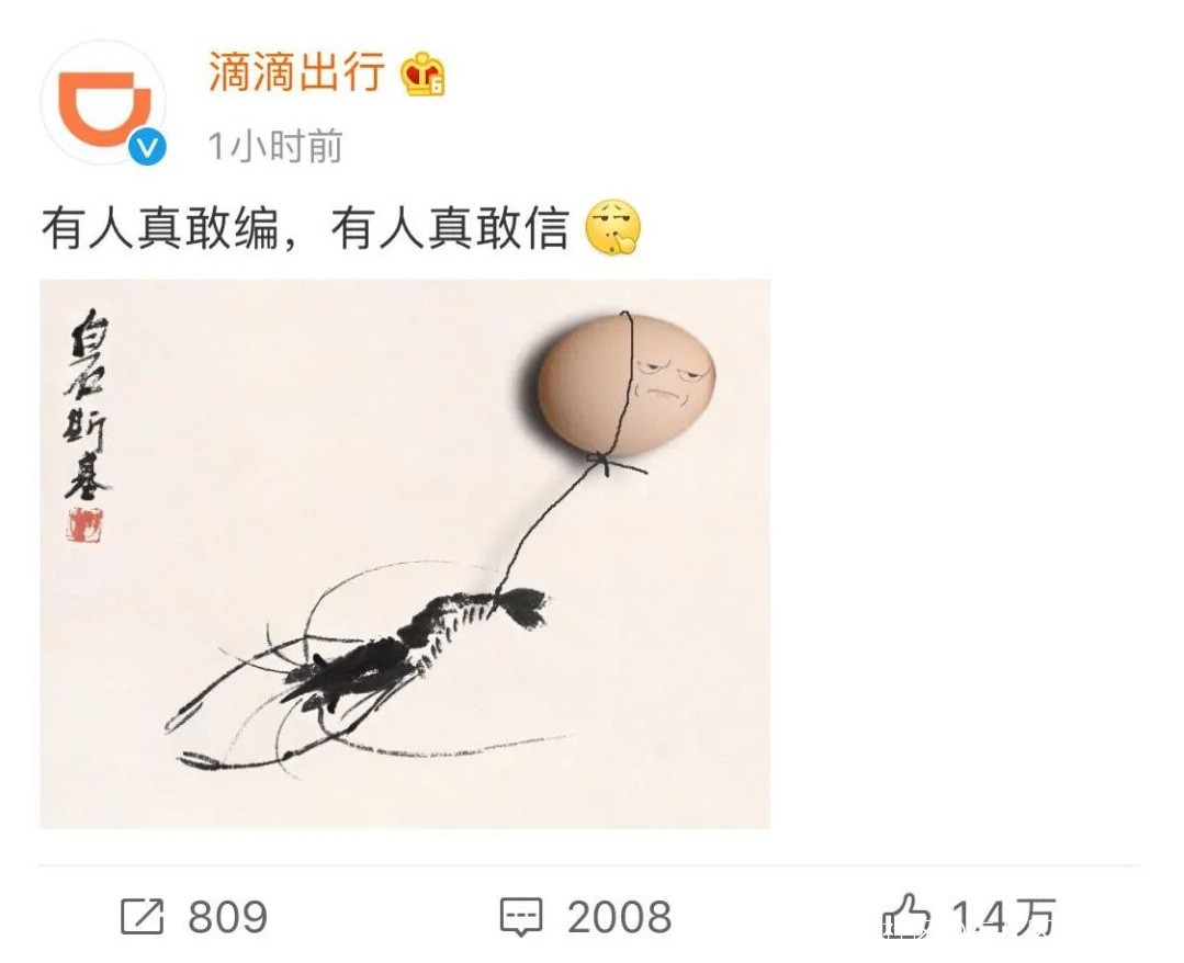 值得注意的是,@滴滴出行 一小時前發微博稱“有人真敢編,有人真敢信”,並配了一張意味深長的圖片。