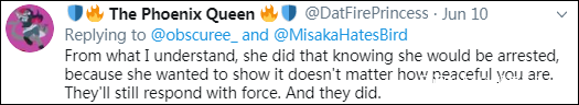 有網友説,佐伊只是想證明不管你有多和平,警察都會用武力來回應你,而事實的確如此。