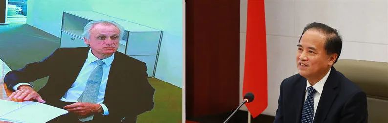 視頻會議中的蒂爾斯和海南省委書記劉賜貴,圖源:海南日報