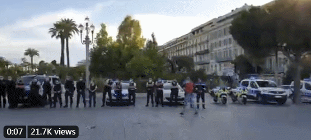 就在前一天(10日晚),還有大約70名警察聚集在尼斯馬塞納廣場上聲援抗議活動,他們身後警車的警笛長鳴,響徹整個廣場。
