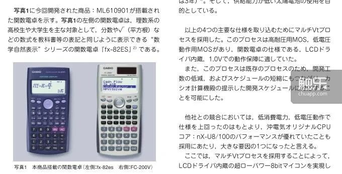 在一次機緣巧合之下,一位網友找到一份計算器芯片生產廠商的技術手冊,發現這個手冊在舉例芯片的應用範圍時提到了科學計算器,配圖使用了fx-82es。於是,網友大膽猜測,這就是fx-82es使用的主芯片。