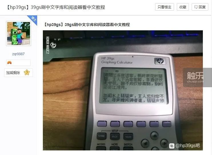 網友開發的HP 39gs中文閲讀器(圖片來源:百度貼吧@zqr9987)