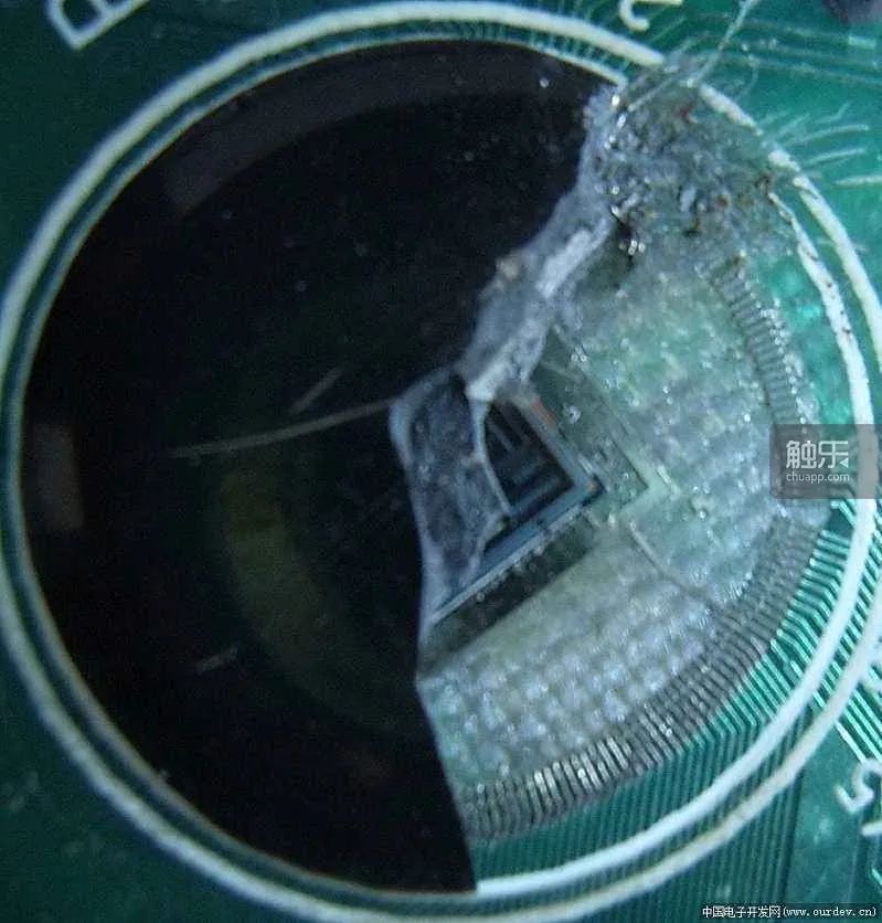 網友挖開使用COB(又稱“牛屎”)封裝的芯片(圖片來源:amobbs@cqsrmxxzyx)