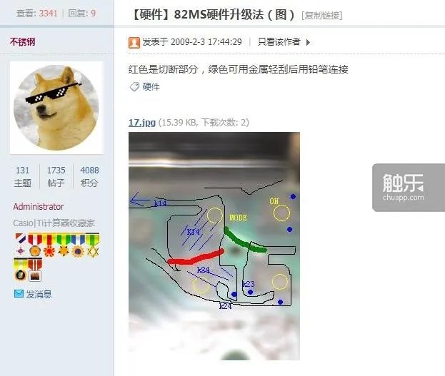 fx-82MS利用硬件漏洞升級,比起升級得到的功能,破解計算器的樂趣更有吸引力(圖片來源:cnCalc計算器論壇@不鏽鋼)