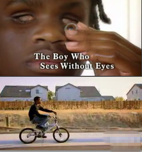 本恩2歲的時候被診斷出患上了視網膜癌症,三歲的時候不得不做了眼球摘除手術。但是就在他五歲的時候,神奇的事情發生了。本恩竟然可以根據舌頭在口腔中發出的聲音判斷周圍事物的方位。