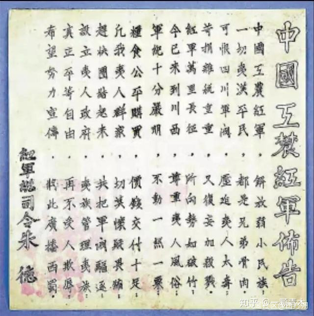 紅軍總司令朱德親筆簽發了《中國工農紅軍佈告》,張貼在冕寧縣城,宣傳黨的民族政策,裏面寫到: