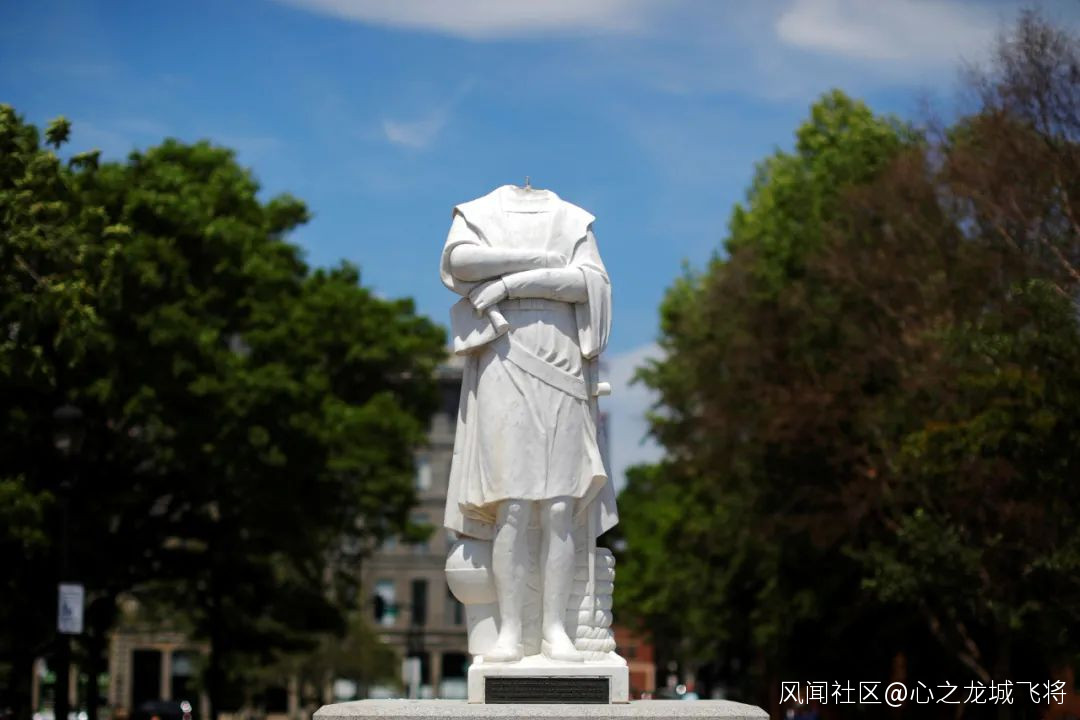 除了這些將軍,作為美洲大陸的“發現者”,哥倫布也倒黴了!他成為了這次抗議活動的“清算對象”,波士頓的一座哥倫布雕像“被斬首”,只剩下身子,面對着遠方。
