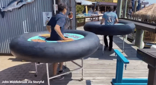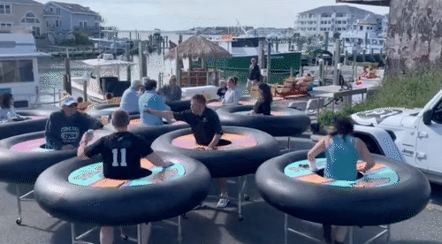 “雖然這移動的輪胎餐桌,有種嬰兒學步車的搞笑感,但我們歡迎越來越多打開腦洞的創意,讓我們等待復工的日子,能苦中作樂”。