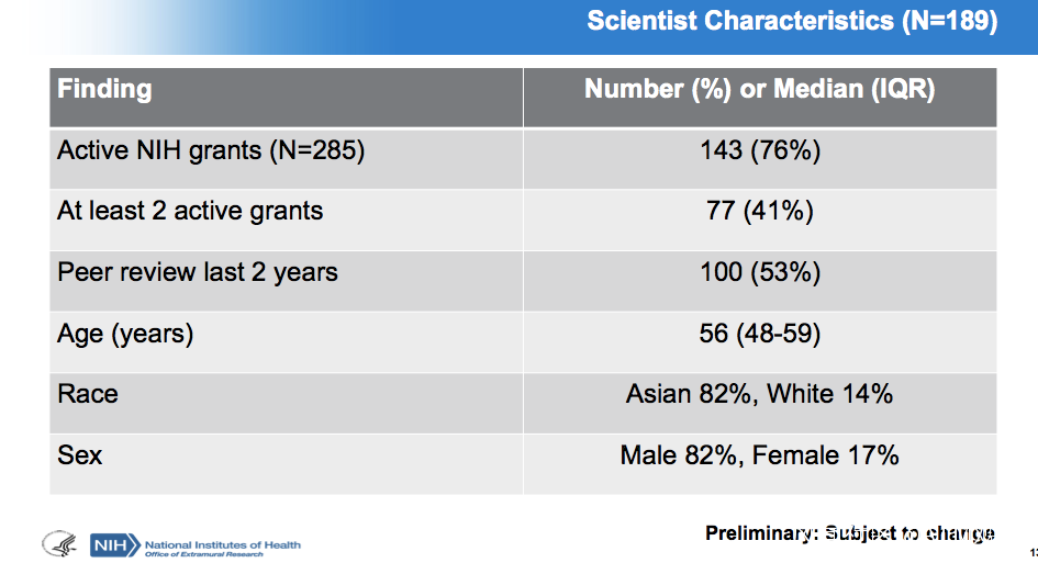 在《科學》雜誌的報道中,Lauer 還透露了更多的調查細節,僅NIH調查的研究人員就多達189名 (不包括美國FBI等其他部門調查的人員) ,這些研究者來自美國87個科研機構,涉及NIH的285個科研項目,項目金額高達1.64億美元。調查報告顯示,大約70% (133名) 的被調查者未披露來自國外的科研經費,54%沒有披露自己參與了國外的人才計劃,另有5%的人違背了NIH基金評審的同行評議規則。