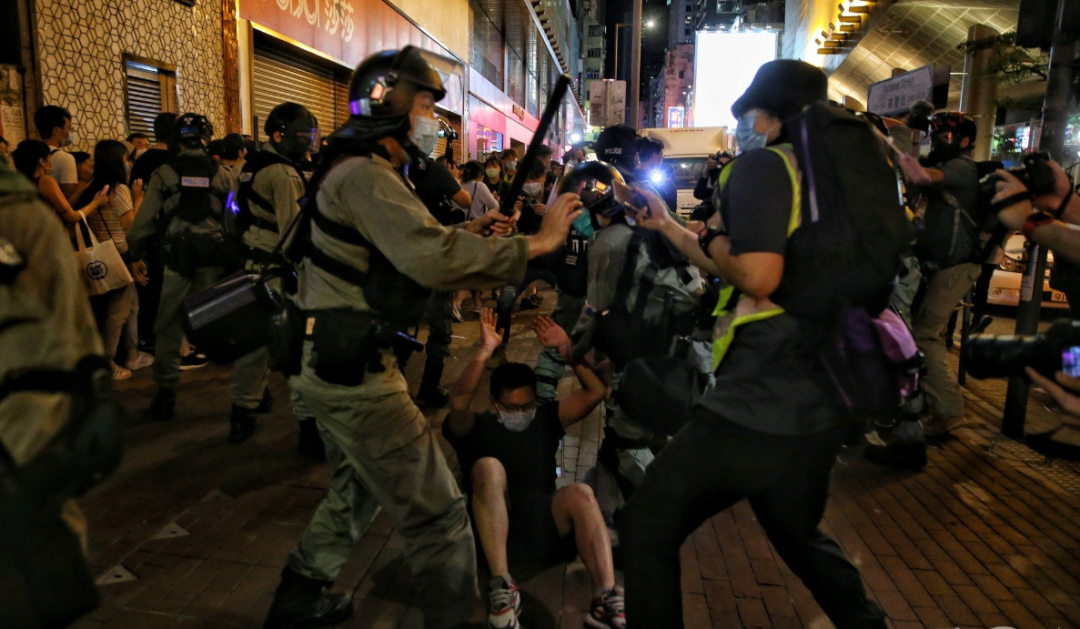 警方表示,有羣眾昨晚於銅鑼灣、元朗、旺角及觀塘一帶集結及高聲叫囂。其中在旺角山東街,有人從高處向警員投擲硬物。警方多次警告參與者停止違法行為無效,遂作出驅散及拘捕行動。
