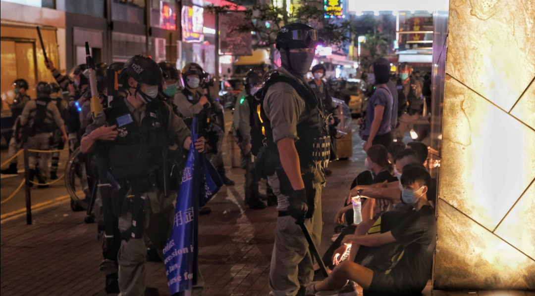 警方表示,入夜後,銅鑼灣、元朗、旺角及觀塘一帶均有羣眾集結及高聲叫囂。其中在旺角山東街,有人從高處向警員投擲硬物。警方多次警告參與者停止違法行為無效,於是作出驅散及拘捕行動。