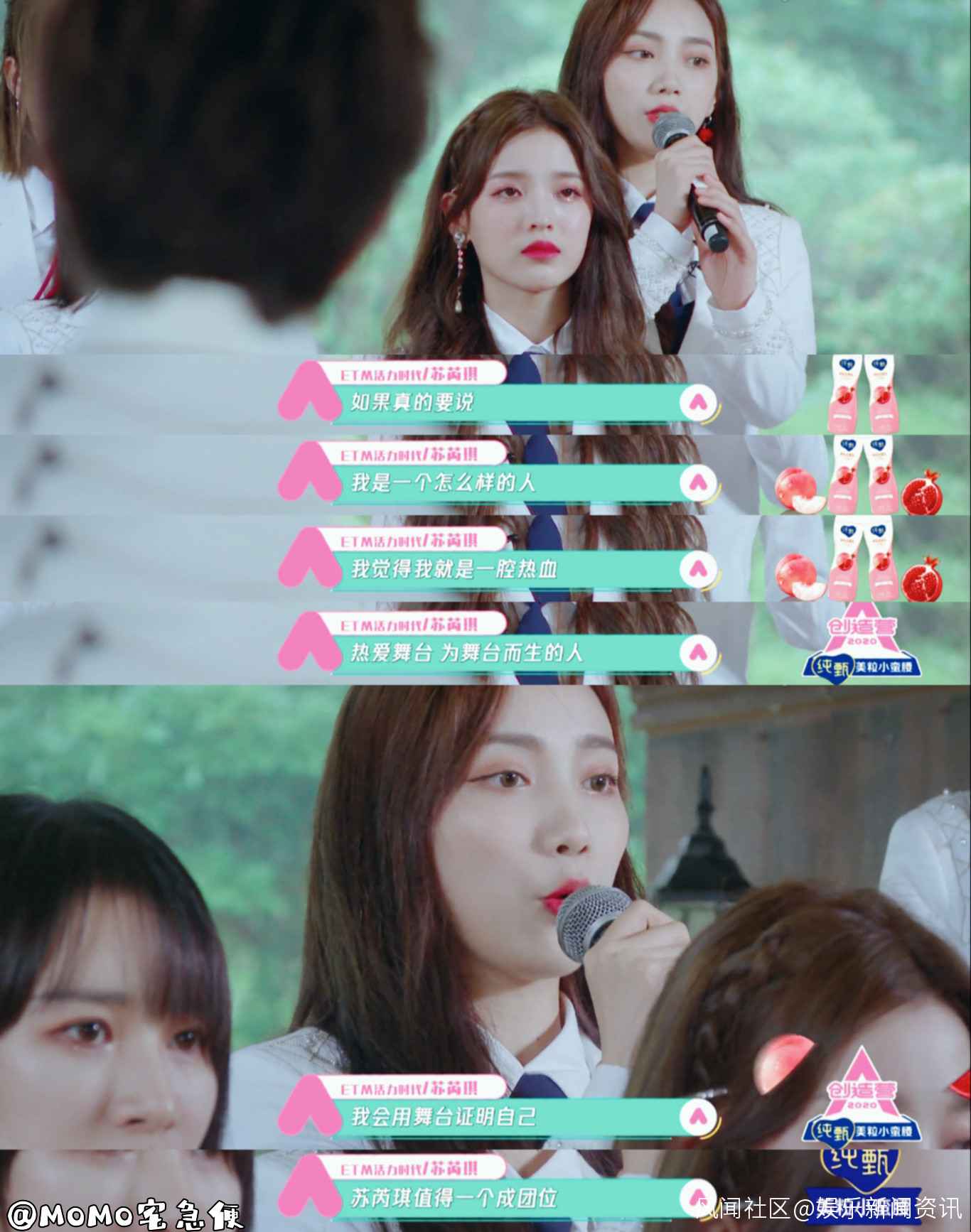 00年出生的蘇芮琪,練習時長已經有四年半了,她的青春幾乎都是在練習室度過的。回顧過往,蘇芮琪坦言自己除了在舞台上,就是在準備舞台的路上。如果真的要説蘇芮琪是一個什麼樣的人,她説她就是一腔熱血,熱愛舞台,為舞台而生的人。蘇芮琪也堅定地表達了她會用舞台證明自己,蘇芮琪是值得成團位地的決心。
