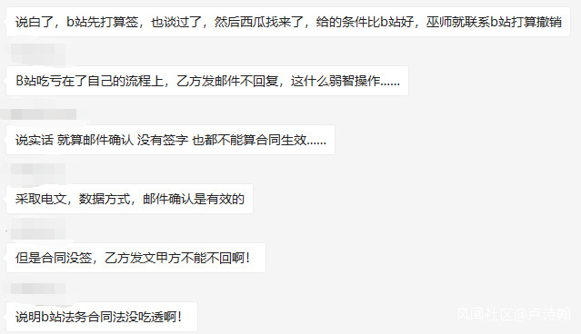 B站和巫師的簽約達成後,在簽署階段,有第三方平台出現截胡,因此巫師放棄了B站選擇了第三方平台。而B站表示我們這簽約了呀?爭議就此展開~當然,這些推測都只是我就目前雙方資料基礎(截止至6月15日,12點)上得到的。因為目前雙方都還處於羅列證據階段,後面會不會出現反轉信息我也無法確定,所以這裏只做簡單推測不下結論。