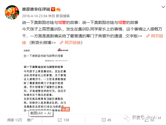 這個是我孩子的同學,平谷農民的孩子,去頂級機構,自己考的,然後機構還管飯的,根本不要花多少錢!而父母接送孩子,順便擺攤賣菜,被城管抓了,當年我們都下去聲援他們家,當時我還出了上面的微博。所以搞奧數,才是貧民打破階層固化的手段。